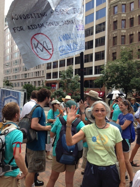 of the Walk. At the end of the day, we also had a new appreciation for good shoes, socks, and feet (no blisters!). For peanut butter and jelly sandwiches (our lunch) and water when you are really, really thirsty. For the excellent camera that comes with the smart phone, and for GPS that gets you from anywhere to where you want to go, including all the Metro stops in the Washington D.C. area Within the hour, we leave The Bolger Center in Potomac, MD, where we have been most comfortably sheltered these few nights, for our rendezvous with the group at Lafayette Park for a noon rally. We’ll hear Bill McKibben and others about what we have accomplished with this action, and what more we can do. This is, after all, just one action among many planned and/or carried out in this Summer of Heat. In the spirit of the quote from Chief Seattle, just in from our buddy in Florida, Laura Kirsner, “We do not inherit the earth from our ancestors; we borrow it from our children,” we have just begun.